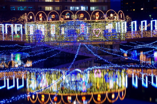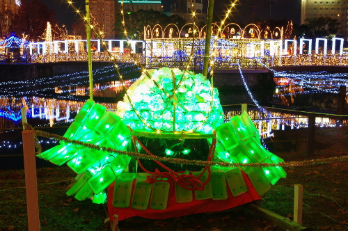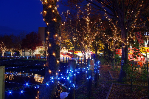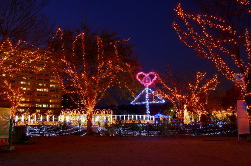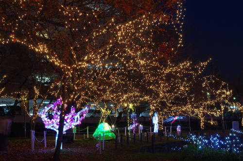 | 鳥栖市の中心部にある鳥栖中央公園では、毎年12月になるとイルミネーションで飾られる「鳥栖イルミネーション」が開催されます。2011年は約20万球の電球を使用し、消費電力が少ないLEDを多用しているイルミネーションになっています。 |