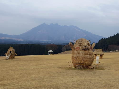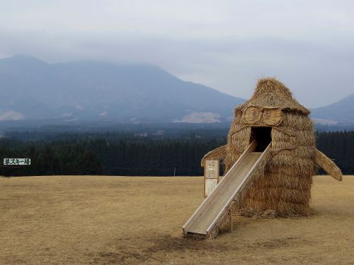 | 高森町の中心街から北に国道265号線に走ると、左手側に開けた場所が月廻り公園になります。敷地内には月廻り温泉や飲食店があり、ここからの眺めは「新くまもと百景」で1位になった素晴らしい景色が広がります。ここからの眺めは阿蘇山・根子岳を眺める事ができ、公園内にはグランドゴルフや草スキーなどが出来る施設もあります。 |