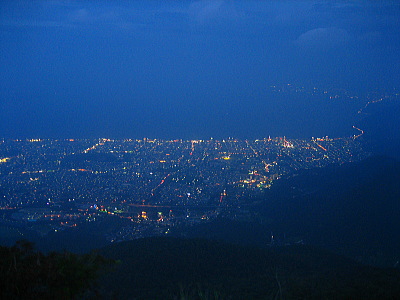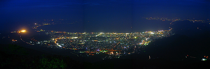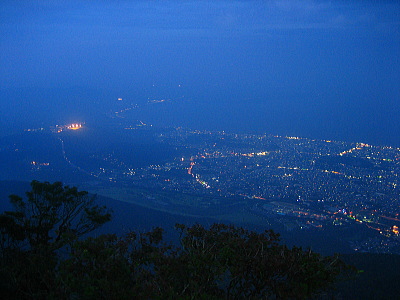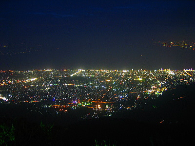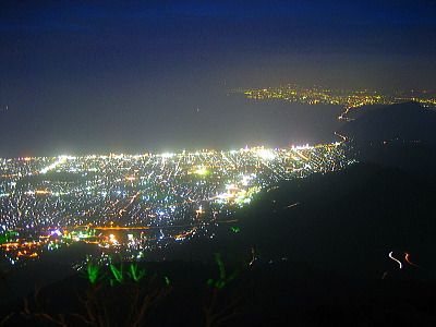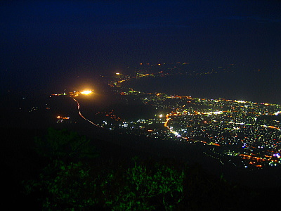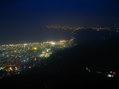| 大分県別府市に標高1375mの山・鶴見岳があります。鶴見岳山頂までは近鉄・別府ロープウェイで結ばれていて、別府市街地と鶴見岳山頂との気温差は約10度あります。夏季には夜間営業されていて、このときだけ鶴見岳から別府市街地の夜景を見ることができます。1000万ドルの夜景と称されている夜景は非常に美しく、大分県一のメジャースポット・十文字原展望台よりも美しいです。 |