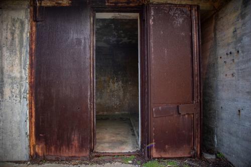| 備蓄倉庫跡であろう分厚い鉄の戸。 |