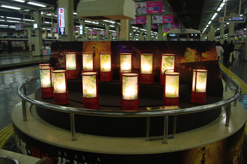 | 阪急梅田駅には、LEDの灯籠が飾られています。 |