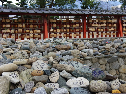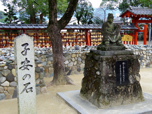 | 宇美八幡宮は安産の神として信仰されているおり、応神天皇・神功皇后・玉依姫命・住吉大神・伊弉諾尊を祀る神社として、多くの妊婦の方が安産祈願で参拝されています。 宇美八幡宮には「子安の石」と呼ばれる奉納された石があり、妊婦は安産にあやかろうとこの石を預かって持ち帰り、御願成就の後は別の新しい石に生まれた子供の成長を願ってその子の「性別」「名前」等を書いて預かった石と共に新しい石を添えてお返しする習慣があります。また境内には樹齢二千年と推定される「湯蓋の森」「衣掛の森」があり、国指定天然記念物になっています。 |