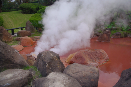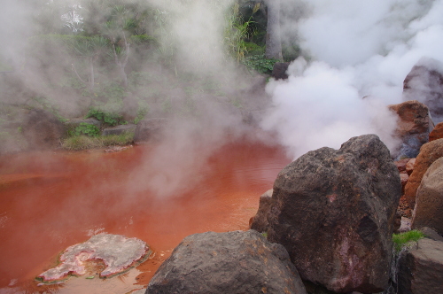 | 海地獄近くにある赤い温泉。 |