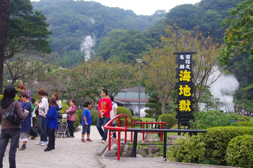 | 海地獄入り口ゲートをくぐった先には日本庭園があります。 |