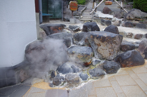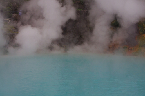 | 海地獄周辺には温泉・蒸気が湧き出ています。 |