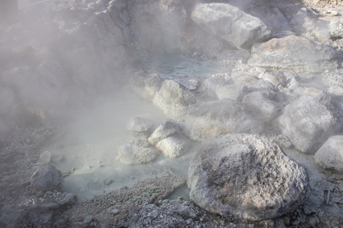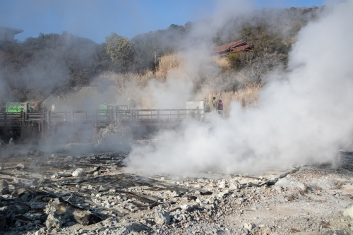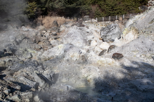至る所から高温の温泉と噴気が激しく噴出し、強い硫黄臭が漂い湯煙を立たせる光景は、この世とは思えない地獄の景色と言えるものです。