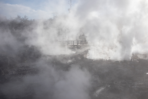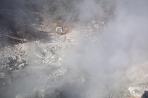 | 雲仙地獄の雰囲気。蒸気が黙々と上がり視界不良です。 |