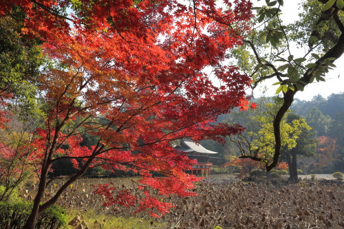 | 菱形池と能楽殿の雰囲気。 |