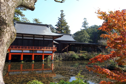 | 大分県宇佐市の宇佐神宮は伊勢神宮に次ぐ宗廟であり、全国四万四千社と称する八幡宮の総本社で主祭神は八幡三神と呼ばれ、祭られている神殿の順に応神天皇(一の御殿)、比売大神(ひめのおおかみ/二の御殿)、神功皇后(三の御殿)の三柱の神が上宮・下宮に祭られています。比売大神は宗像大社の宗像三神の事とされています。