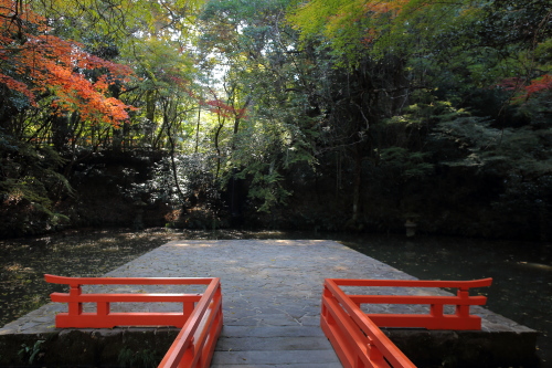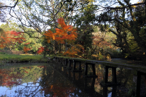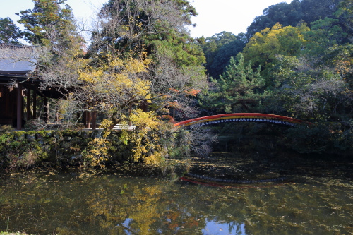 | 菱形池と能楽殿に架かる橋。 |