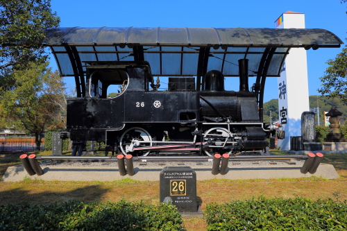 | 参道沿いに展示されている機関車。 |