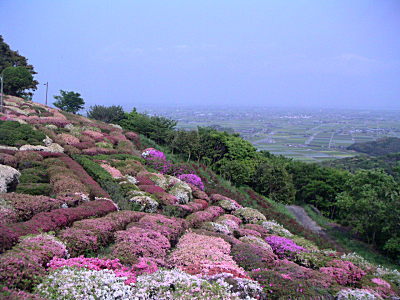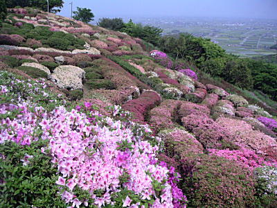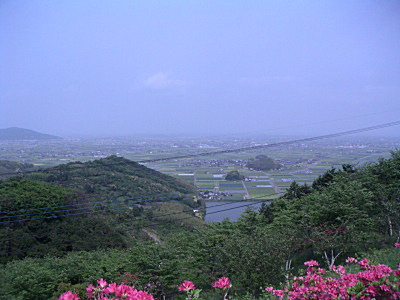 咲き乱れたツツジと佐賀平野。