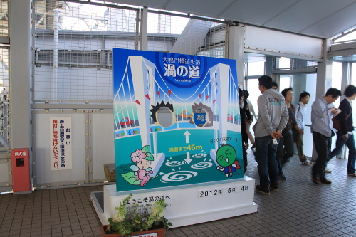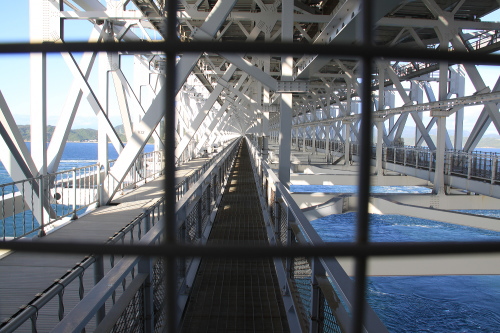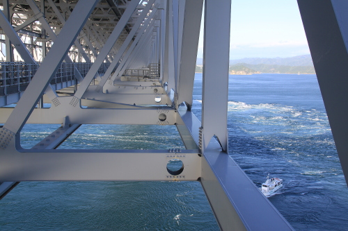 | 鳴門市・鳴門海峡に架かる大鳴門橋の橋桁下に作られた遊歩道で、遊歩道からは瀬戸内海と鳴門海峡の潮の流れを観賞する事ができます。展望室は海上45mで床がガラス張りになっていて、鳴門海峡の潮流れを見る事ができ、その潮の流れは迫力があります。遊歩道は潮風が強いので、寒さ対策や女性の方は気をつけないといけません。 入場料:大人500円。 営業時間:夏季(3月〜9月)9:00〜18:00 冬季(10月〜2月)9:00〜17:00 |
