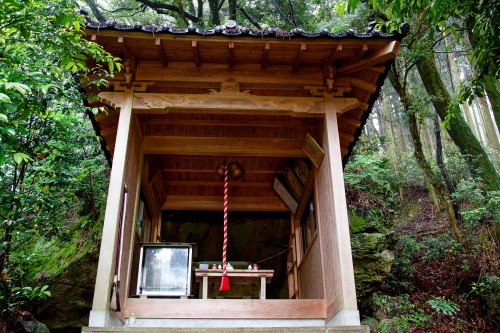 | 宮若市から篠栗町に抜ける県道92号線の道沿いにある厳島神社は、非常に小さく目立たない神社ですが、御神体が巨大な岩であると共に山の中にあるという事で神秘的な神社です。広島・宮島の厳島神社は宗像三女神が御祭神ですが、ここの厳島神社は、宗像三女神の一人・市杵嶋姫命が神仏習合で弁財天として祀られています。 |
