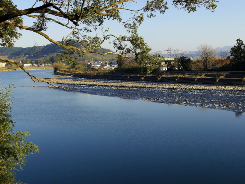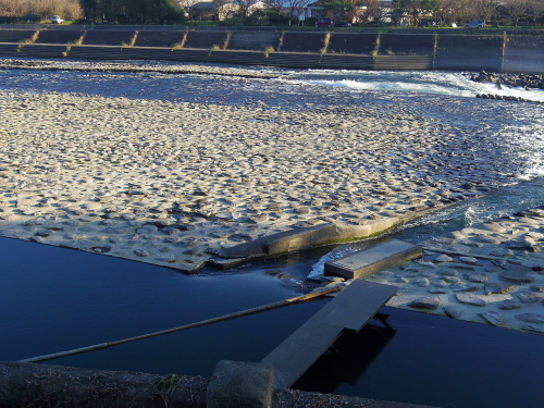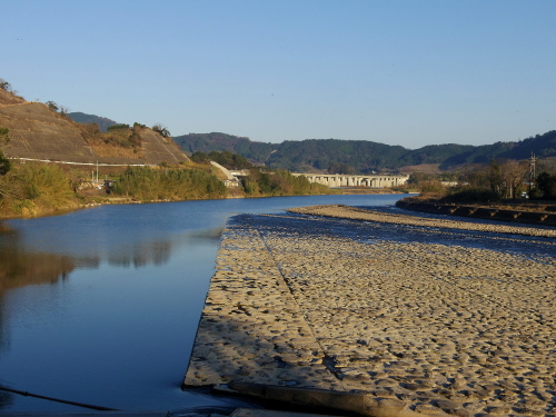 | 朝倉市を流れる筑後川にある山田堰は、筑後川の水を農業用水として利用するために江戸時代に造られたものです。山田堰でせき止められた水は堀川を伝って8km隔てた田畑を潤しています。当初の建設から100年以上の年月を経て、1790年の工事により現在の堰が完成したとされており、先人の知恵の結晶です。総面積約25,370平方キロメートルの巨大な構造物です。 |
