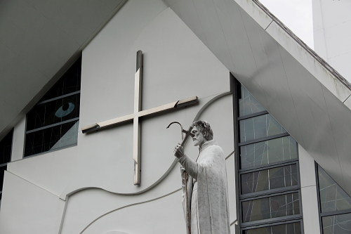 | 山口サビエル記念聖堂と聖フランシスコ・サビエル像。 |