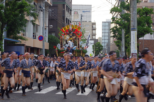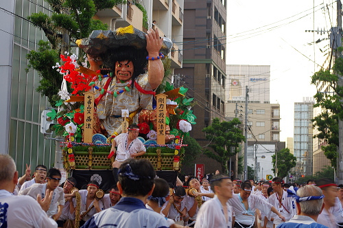 | 七番山笠・西流:剛力一投破漆黒。 |