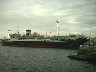 | 横浜港に係留されている貨客船「氷川丸」。2008年に営業再開予定らしいです。 |