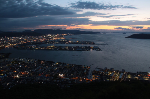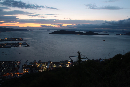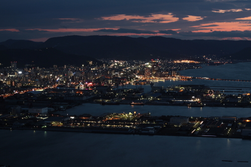 | 日没頃の高松市中心部と高松港を望む。(西方向) |