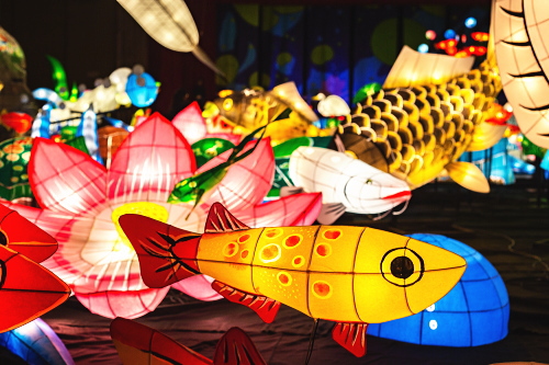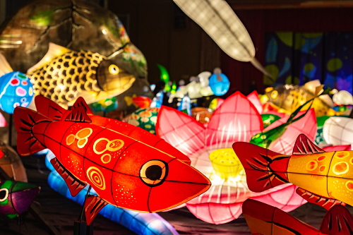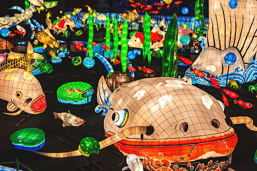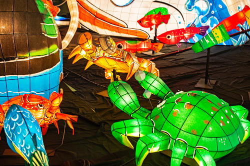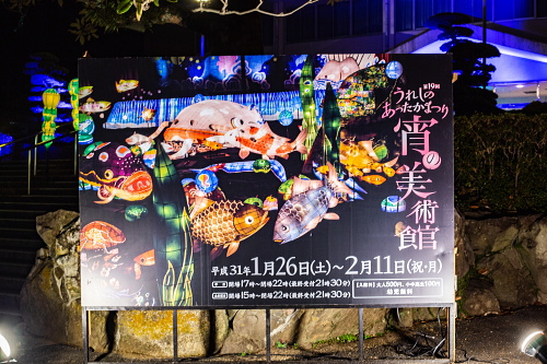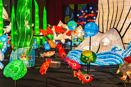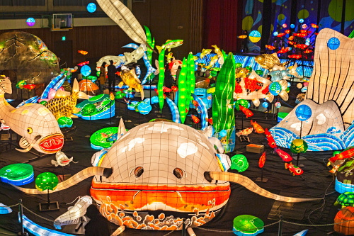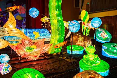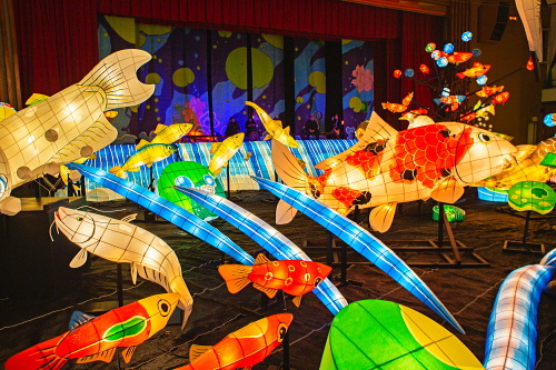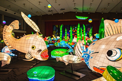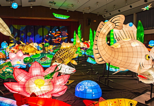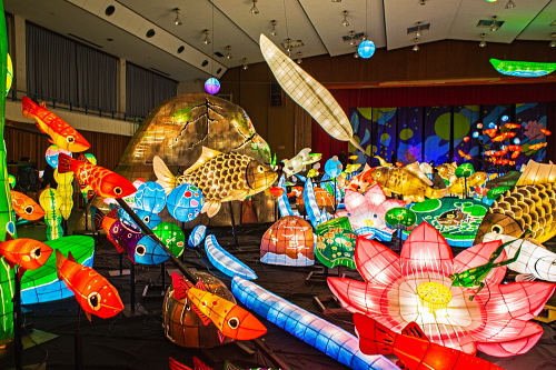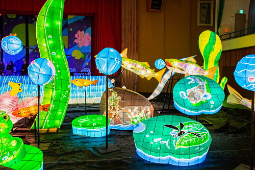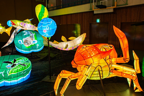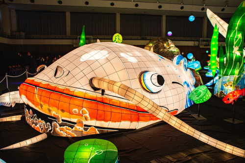 | 2000年から嬉野市嬉野温泉で行われている「うれしのあったかまつり」では、嬉野市体育館内で「宵の美術館」が開催されており、ランタン空間作品として、ランタンアーティスト三上真輝氏と延べ500名の嬉野市民が共同で製作した約380体のランタンが並び、日本最大規模のランタン空間作品「なまずの寝床」が出現します。嬉野では「白なまずの伝説」があり、古くから嬉野で守り神として祀られている豊玉姫の遣いとして白なまずが嬉野川を支配し、肌の病に御利益があるとされています。 |