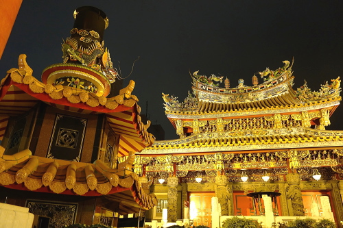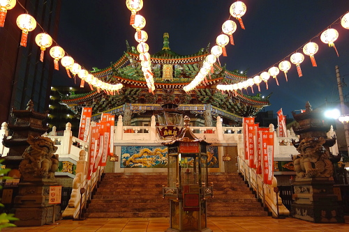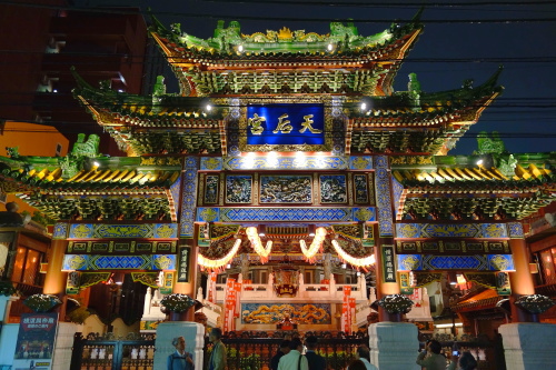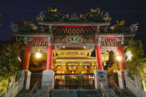 | 台南市大天后宮から分霊された横浜媽祖廟ライトアップ。 |