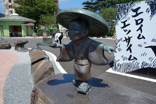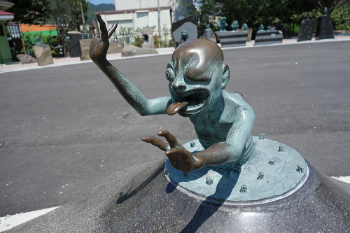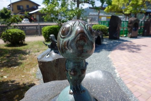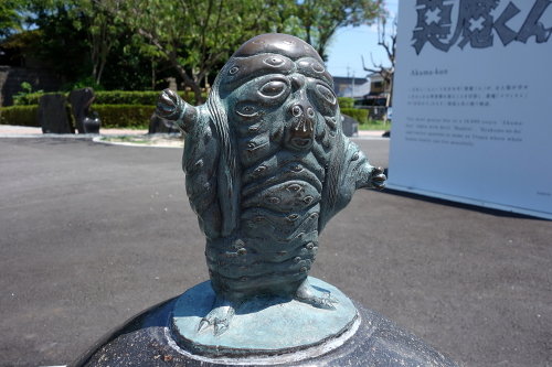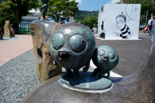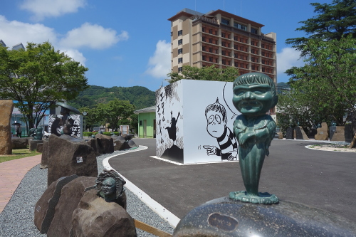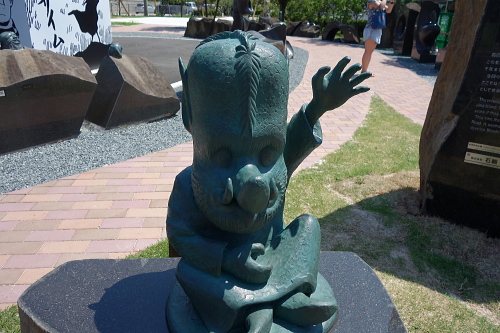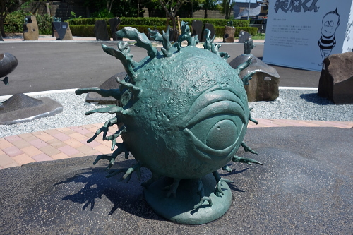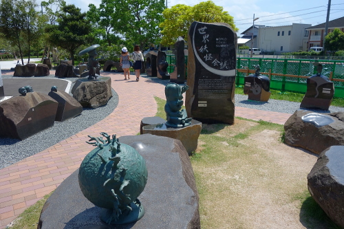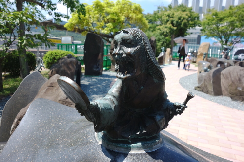 | 境港の玄関口であるJR境港駅前にある駅前広場に水木しげるロードのリニューアル期間中、一時的に取り外した水木しげるロードのブロンズ像をJR境港駅前公園に集め、「世界妖怪会議」と題した特別展示を開催されています。多い時で60体以上のブロンズ像が一堂に集まります。平成30年までの開催になっています。 |