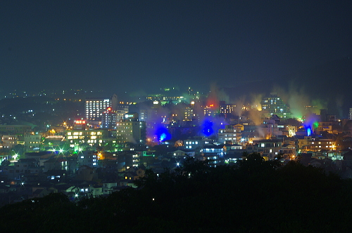 | 鉄輪温泉地区の夜景を望む。(南西方向) |