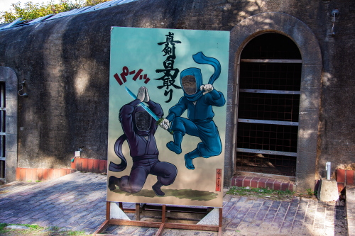 | 忍者村肥前夢街道・登り窯にある顔はめパネル。 |