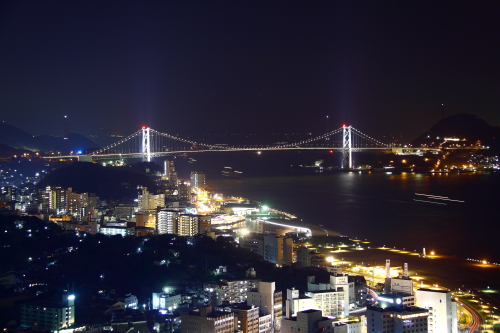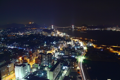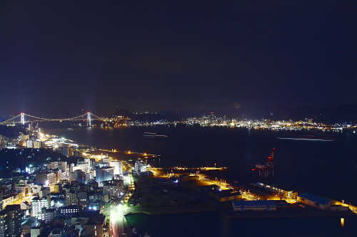 | 関門橋と対岸の門司港の夜景を望む。(東方向) |