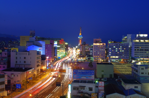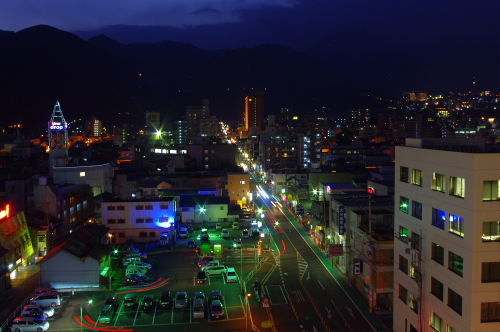 | 別府市の中心街の海側に建てられている「ゆめタウン別府」の立体駐車場最上階からは、国道10号線を中心に別府タワーなどを一望できるスペースがあり、手軽に夜景を楽しむ事ができます。国道10号を行きかいする車の光と別府タワーの照明が美しいです。 ※撮影にあたり「tomosang」さんの情報を元に訪問しました。 |