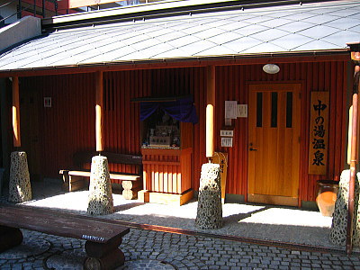 | 湯平温泉の4つある共同浴場の一つ・中の湯温泉。最近は国民保養温泉地に指定され、観光客が多くなったので新しく建てられた建物が多くなってます。 |