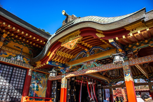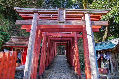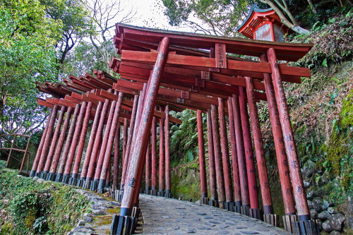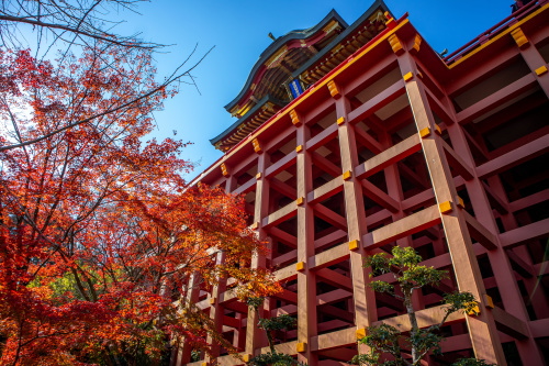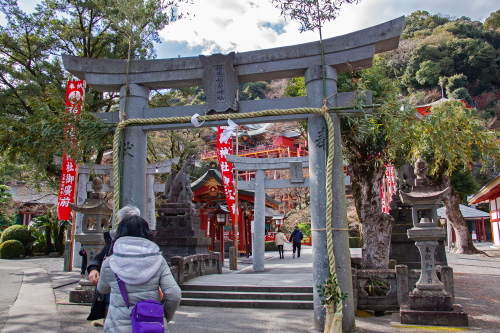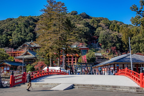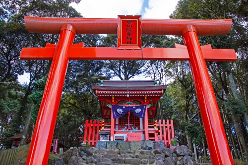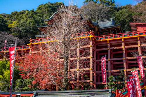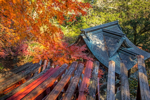 | 佐賀県鹿島市に鎮座する祐徳稲荷神社は、京都「伏見稲荷神社」・茨城県笠間市「笠間稲荷神社」と並び「日本三大稲荷」の一つとされ、年間300万人の参拝客が訪れる神社です。別名「鎮西日光」とも呼ばれ、衣食住・生活全般の守護神として、商売繁盛・家運繁栄などで尊崇されています。主祭神として「倉稲魂大神(宇迦之御魂神)」「大宮売大神」「猿田彦大神」が祀られています。 創建は1687年であり、鹿島藩主鍋島直朝夫人で、後陽成天皇の孫・左大臣花山院定好の娘の萬子媛が、朝廷の勅願所であった稲荷大神の御分霊を勧請したのに始まります。 現在の本殿は、昭和初期に建て直されたものが1949年5月に焼失したあと、伊勢神宮造営局長の角南隆が設計して1957年に再建されたもので3代目になります。 秋には紅葉スポットとして紅葉を楽しめます。また約3000台駐車可能である参拝者用無料駐車場があります。 |