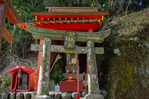 | 御本殿舞台の真下に御鎮座されている岩崎社。御祭神は岩崎大神で縁結びの神様。 |