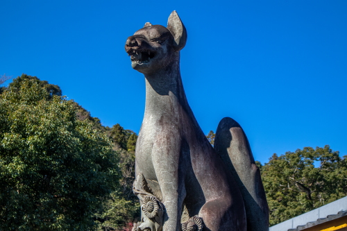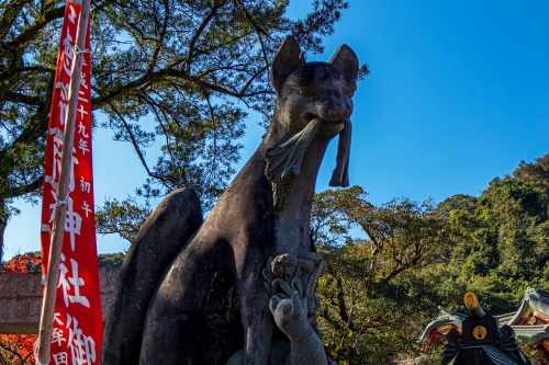 | 祐徳稲荷神社入口の鳥居にある駒狐。 |