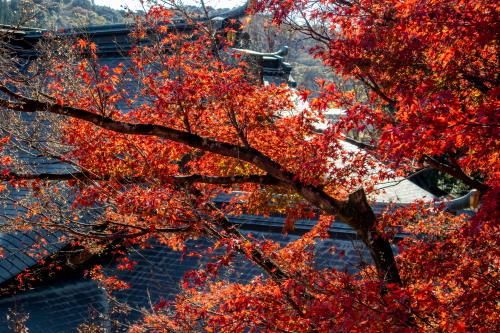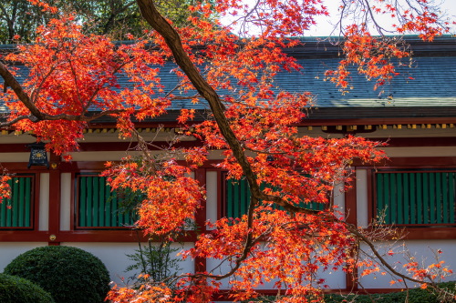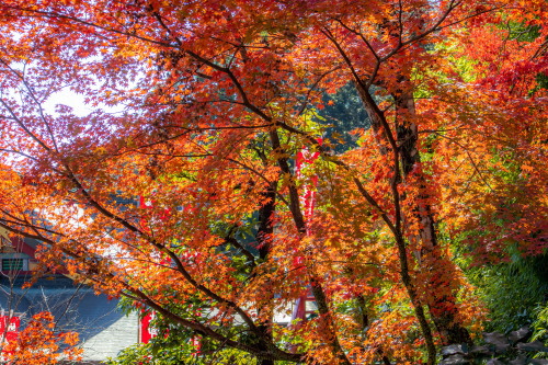 | 祐徳稲荷神社手水舎近くの楓の紅葉。 |