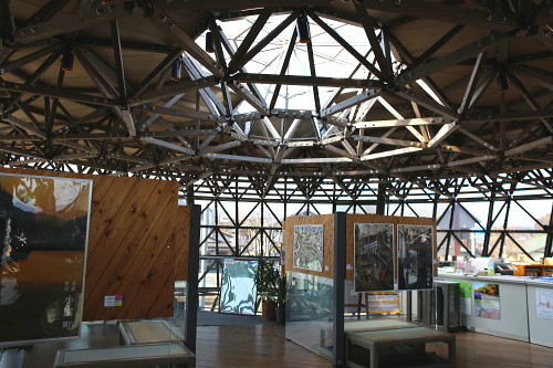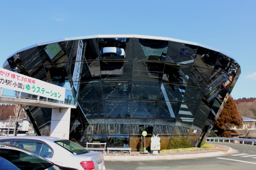 | 熊本県小国町の国道387号・442号沿いの緑豊かな場所にある道の駅で、日本初の木造立体トラス工法で作られた全面総ミラーガラス張りの逆台形のユニークな外観をもつ特徴的な形をした建物です。ゆうステーションには1階は御土産屋があり、2階には小国町の観光案内所・情報発信基地になっています。ゆうステーションに隣接している所は売店になっており、休憩を取る事ができます。 また廃線になった宮原線の最終駅である肥後小国駅があった事もあり、現在では駅標と線路が残されています。昔は大分県にある豊後森機関庫と肥後小国駅がつながっていました。 |