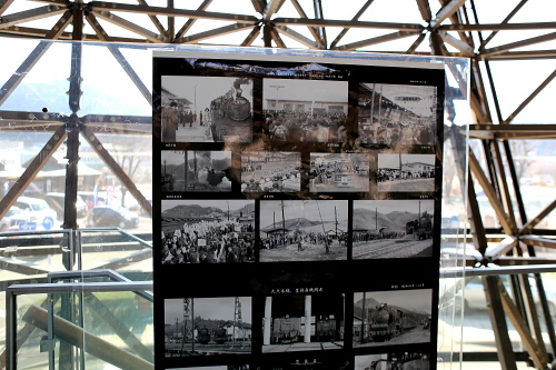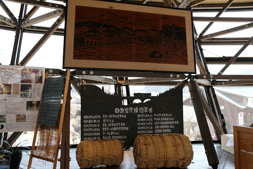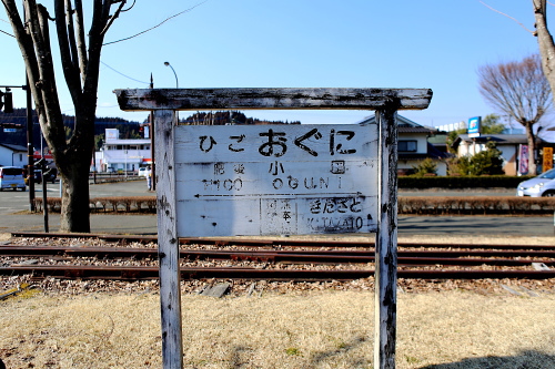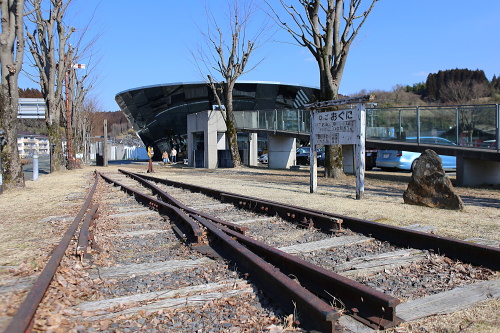 | 道の駅・小国ゆうステーションと駅標・線路。 |