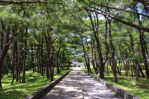 | 座喜味城跡に続く松林。 |