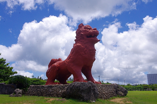 | 残波岬にある巨大なシーサー。 |