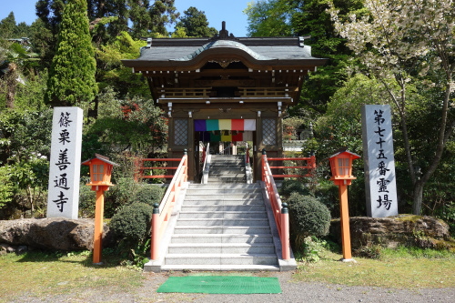 善通寺は元々高野山真言宗の寺院でしたが現在は単立の寺院で、御本尊は四国八十八箇所霊場第75番札所・善通寺から勧請した薬師如来です。元々は篠栗四国八十八箇所霊場第75番札所の霊場でありましたが、篠栗霊場会では現在の第75番札所は紅葉ケ滝薬師堂になっており、善通寺も第75番札所を主張している状況にあります。
