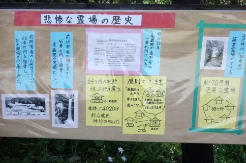 | 南蔵院の問題を説明している看板。 |